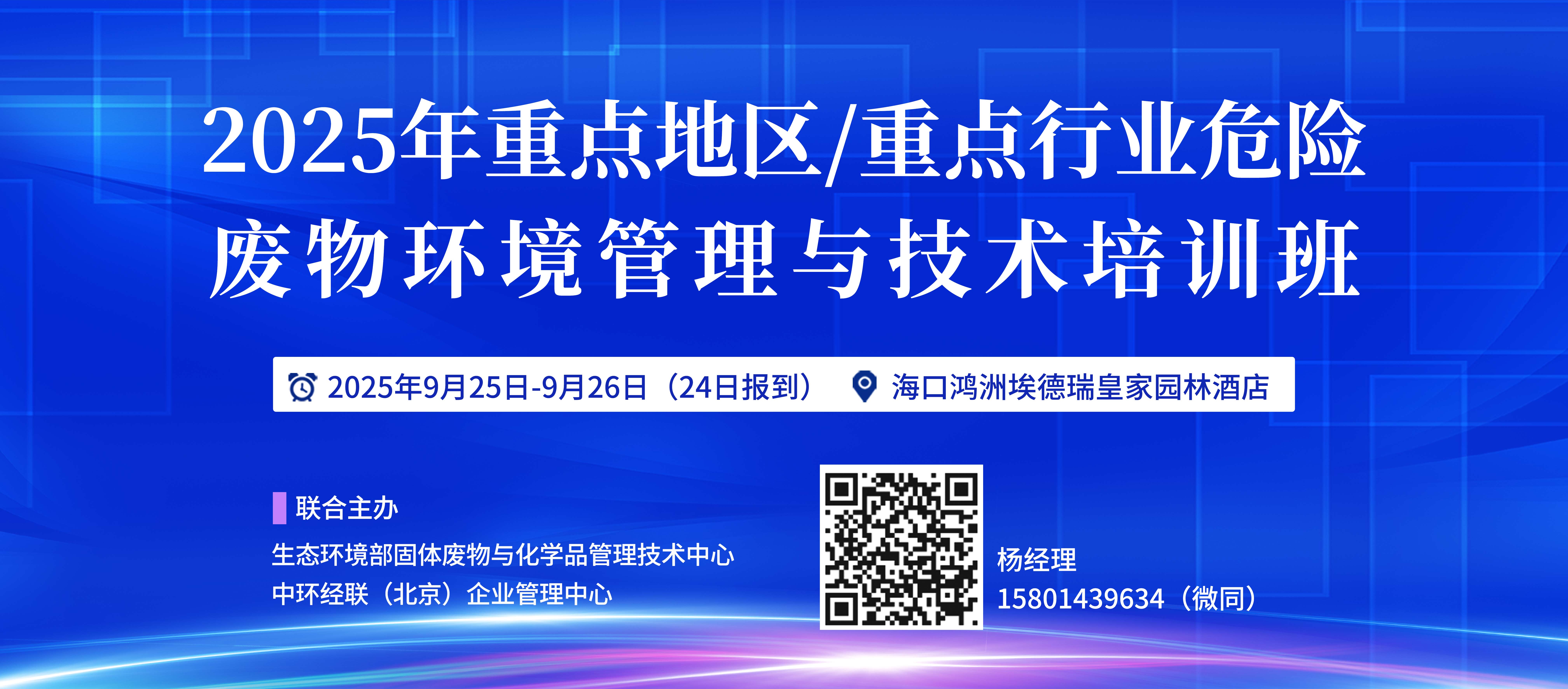 【9月·海口】2025年重點地區/重點行業危險廢物環境管理與技術培訓班 重磅來襲!